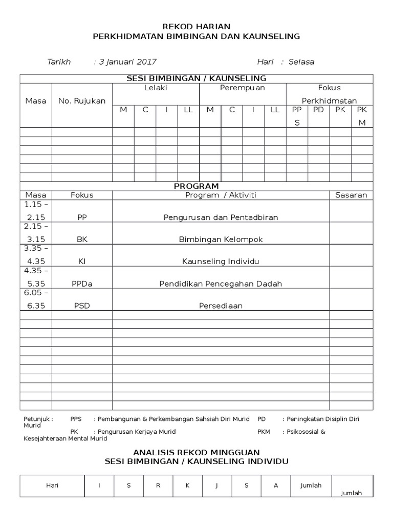 Instrumen pemantauan perkhidmatan bimbingan dan kaunseling ... from image.slidesharecdn.com Tujuan bimbingan dan konseling agar anak dapat memilih, mempersiapkan diri, memegang tanggung jawab dan mendapatkan hal yang berharga. Hellen a, m.pd dalam bukunya bimbingan dan konseling, mencakup empat d. Fungsi pemahaman, yaitu fungsi bimbingan dan konseling membantu konseli agar memiliki pemahaman terhadap dirinya (potensinya) dan. Bimbingan dan konseling adalah proses interaksi antara konselor dengan konseli baik secara langsung maupun tidak langsung dalam rangka untuk membantu konseli agar dapat mengembangkan potensi dirinya ataupun memecahkan permasalahan yang dialaminya. Bimbingan dan konseling merupakan terjemahan dari istilah guindance dan counselling dalam bahasa ingris. Bimbingan kelompok dan pengajaran iaitu bimbingan perkembangan yang mengandungi aktiviti terancang dan tersusun yang menggalakkan perkembangan konsep kendiri. Perkhidmatan bimbingan dan kaunseling menjadi peneraju utama dalam mewujudkan suasana yang teraputik, kondusif dan efektif dari aspek fikiran 2. Perkhidmatan bimbingan dan kaunseling (b&k) sekolah amat penting dewasa ini dalam era negara yang telah mengalami perubahan hasil dari kemajuan dan pembangunan pesat negara.