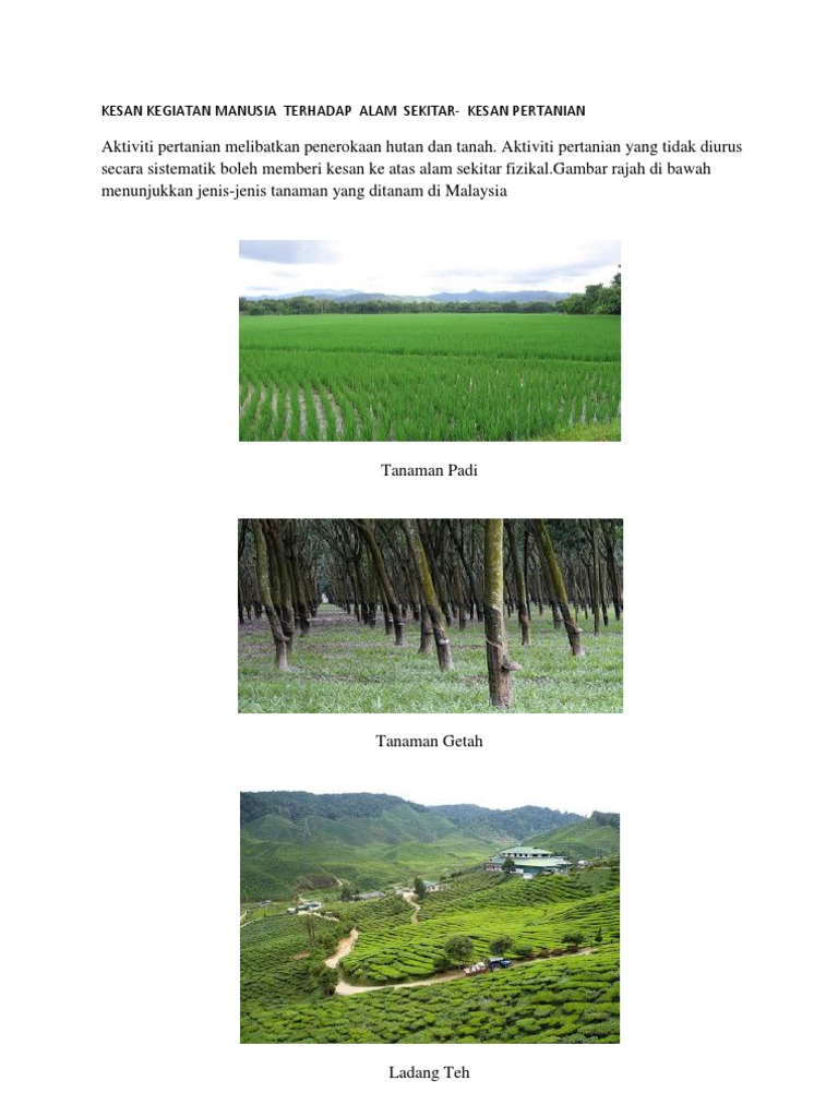 Berikut dikongsikan adalah maklumat tentang kesan guna tanah terhadap alam sekitar mengikut jenis guna tanah aktiviti pertanian boleh memberi kesan negatif kepada alam sekitar adalah iaitu e. Kesan pencemaran alam sekitar 1. Operasi mencari dan menyelamat (sar) seorang lelaki yang dikhuatiri hilang selepas dipercayai dihanyutkan arus deras dalam kejadian banjir di kawasan taman happy, rasah awal pagi tadi, diperluaskan sehingga ke kawasan sungai linggi. Kesesakan lalu lintas di jalan raya kesan rumah hijau rumusan. Kejadian tanah runtuh yang berlaku berpunca daripada fenomena semulajadi dan aktiviti manusia seringkali menimbulkan masalah kepada kehidupan dan alam sekitar.